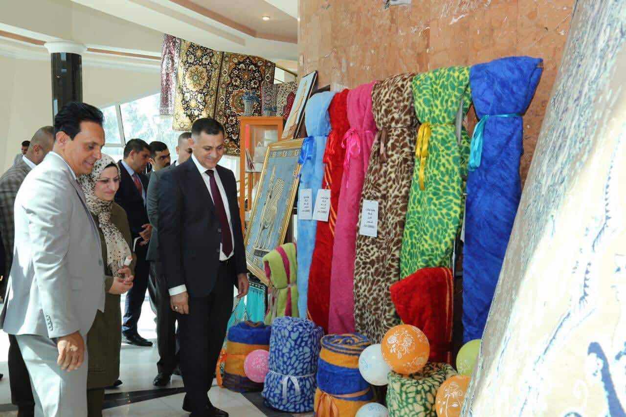 الربيعي يزور معرض المنتوجات النسيجية والجلدية في برج بغداد