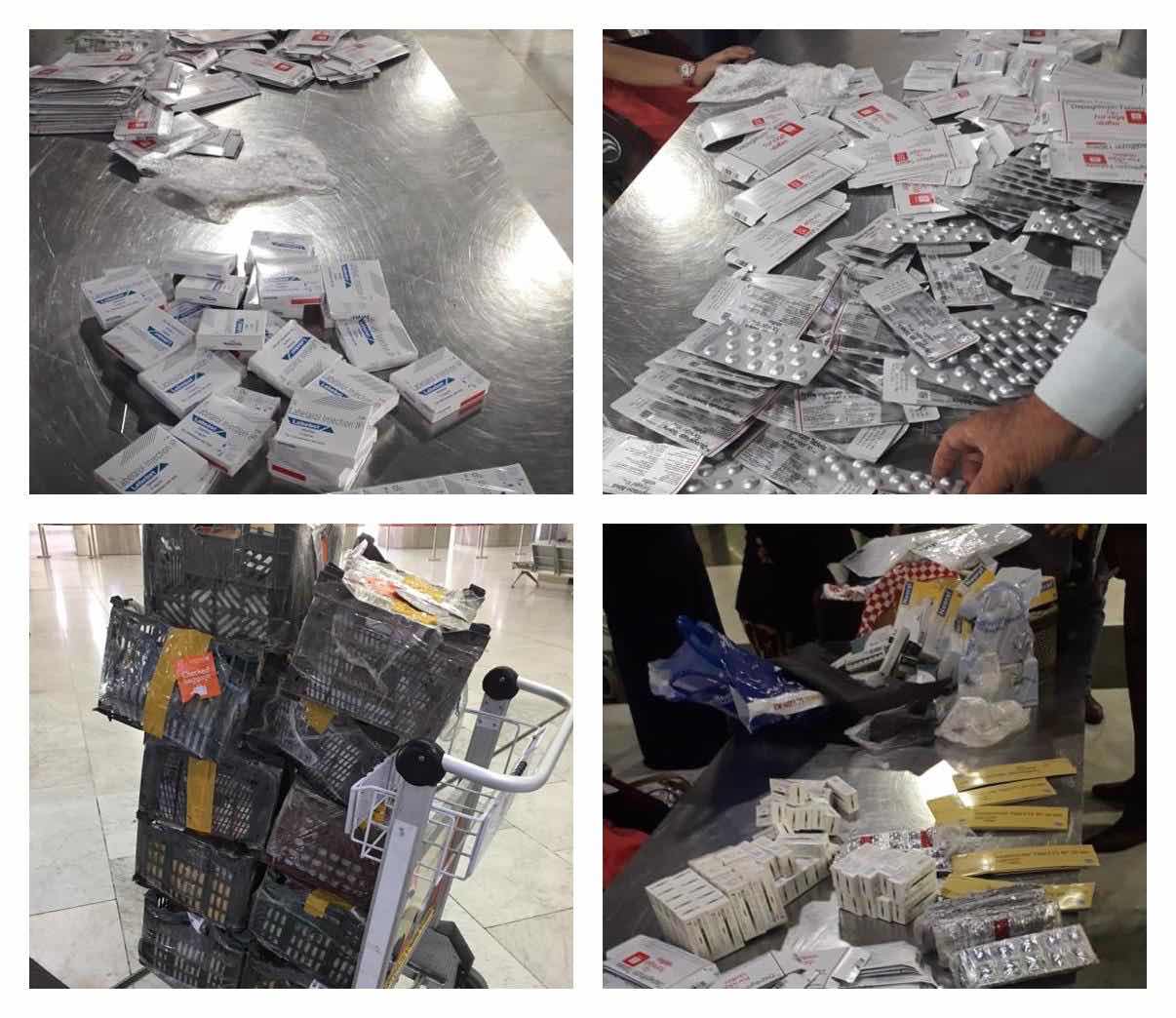 وأضافت ،ان كوادرها العاملة في المطار قامت ايضا بحجز ادوية بشرية مختلفة ( ابر ، حبوب ) بكميات تجارية و بدون موافقات استيرادية في مخالفة للضوابط والتعليمات المتبعة .