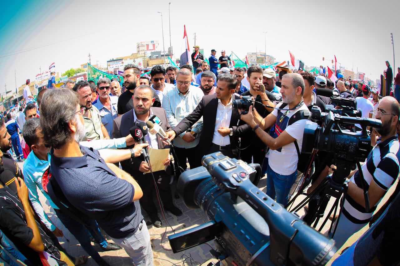 و وعد السيد المدير العام خلال لقائه وحديثه مع المتظاهرين في محل التظاهرة برفع مطالبهم وايصال صوتهم لاعلى المستويات في الدولة وبذل كل ما كل ما يمكن من جهد من اجل حصولهم على حقوقهم .